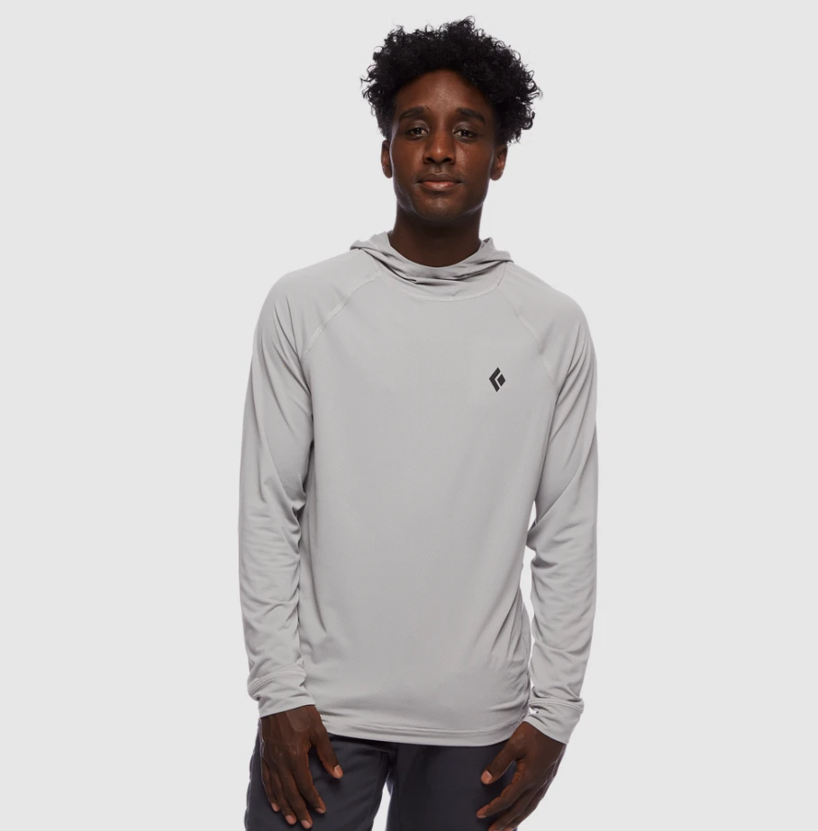 A technical fit paired with a highly protective fabric, the Black Diamond Alpenglow Hoody is a proven BD style which offers coverage on desert multi pitches, high-alpine approaches and hot crag sessions. With UPF 50+ and BD.cool mineral based in-fiber cooling technology, which reflects 71% of near-infrared rays and reduces wearer’s temperature. A layer of protection to your arsenal, with an under-the-helmet hood and pullover design, plus Polygiene odor control, the Alpenglow hoody offers the ultimate in performance and long-wearing comfort.