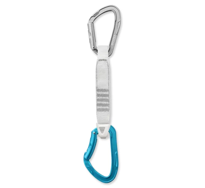An extremely light quickdraw made with the lightest solid gate carabiners on the market designed for alpine tours or trad climbing, available in two lengths: 14 cm with a 15/22 mm quickdraw sling made from HMPE with anti-twist and 60 cm with an 8 mm Dyneema® sling. M