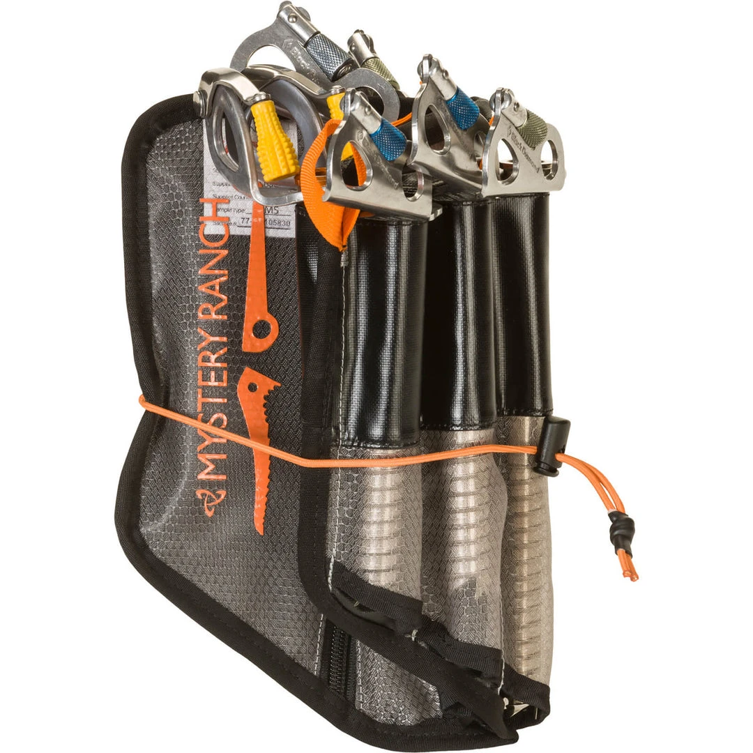 A dedicated zippered pocket and hideaway inner compartment keeps everything in one place while lightweight 3mm EVA foam provides enough cushion to prevent hardware from rubbing through. Burly and breathable mono mesh sleeves provide lightweight protection when transporting your screws inside your pack but also allows them to thoroughly dry out when the day is over without having to unpack each screw individually. Retention flaps above the screw sleeve keep them from falling out when the pouch is inverted or tossed into your pack. If you decide to run a lighter kit, you can wrap your crampons in for a light and versatile setup.
