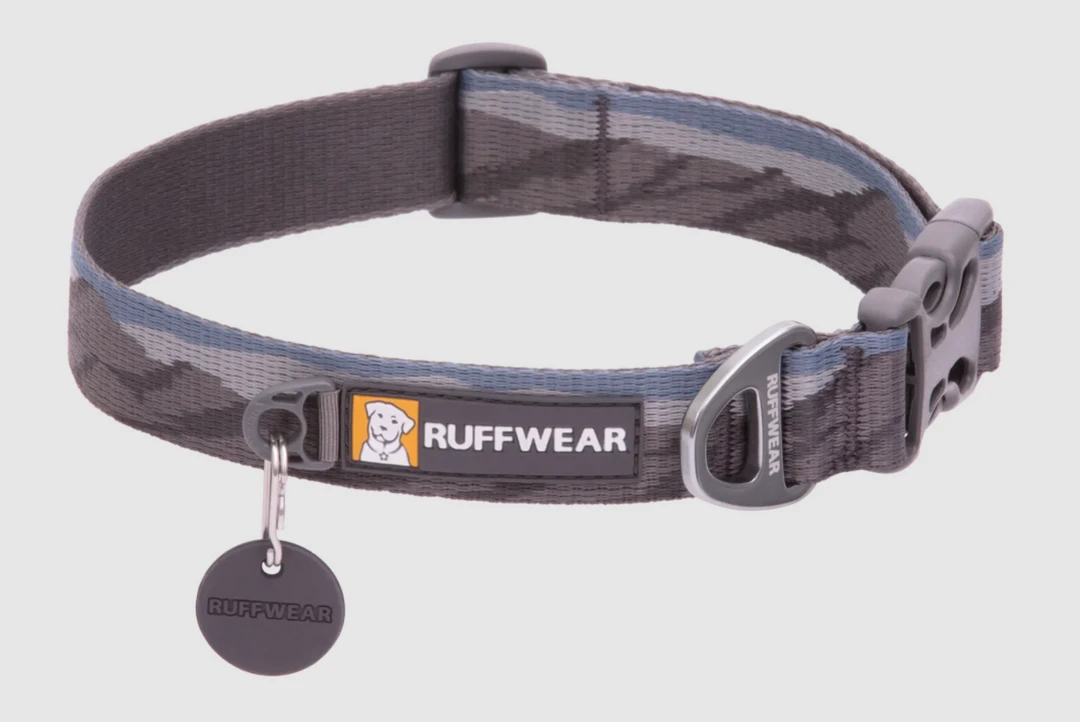 The Flat Out Collar is our everyday dog collar with an easy-to-use side-release buckle and outdoor-inspired patterns that connect you with your favorite wild spaces. It’s packed full of Ruffwear’s essential collar features: separate ID tag attachment point with tag silencer, strong and comfortable webbing, and an aluminum V-ring leash connection point.