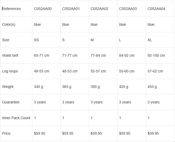 CORAX LT is a versatile climbing harness. Designed and manufactured by Petzl, it benefits from the brand’s expertise and reputation and is a comfortable harness while belaying or hanging. Four gear loops provide sufficient space for the required gear (quickdraws, nuts, or other equipment). The quality of materials make it highly durable. Available in five sizes for a variety of options.