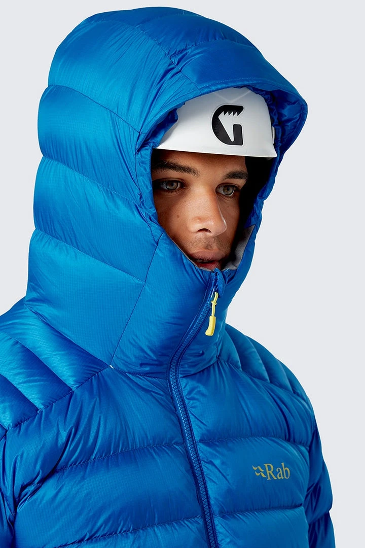 With its zoned baffles, high-loft goose down and ascent-ready feature set, Rab’sElectron Pro Jacket makes mountain-grade warmth and protection packable, portable and flexible.