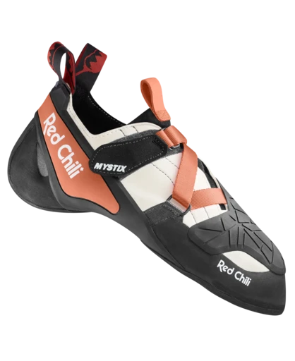 The MYSTIX is a high-end climbing shoe with a powerful downturn for steep to extreme overhanging routes in the climbing gym and at the crag. Built on an aggressive and pointed last, the shoe allows very precise footwork on vertical and overhanging terrain. It offers great support on small edges while remaining flexible enough to impress in modern bouldering gyms which often possess many large volumes and slopers.