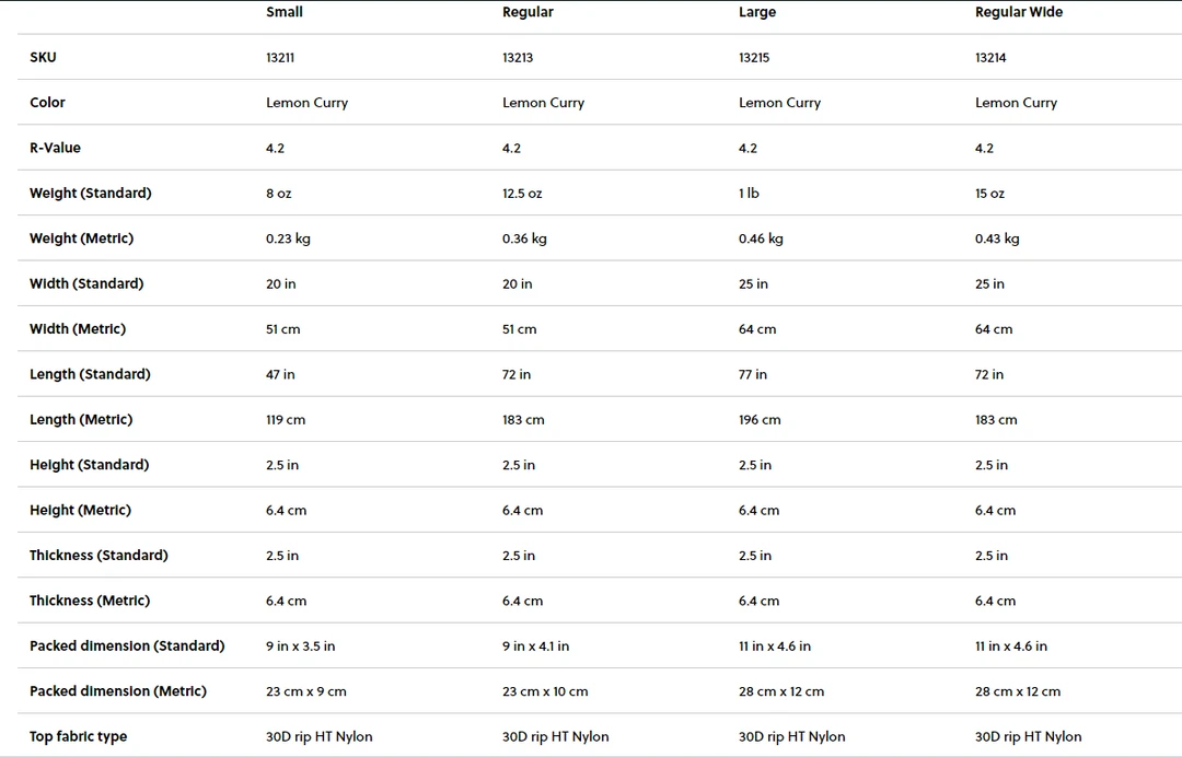 For a minimal pack size and maximum performance, our NeoAir XLite offers the gold standard in lightweight backpacking comfort. The unrivaled Triangular Core Matrix offers the best warmth-to-weight ratio of any air sleeping pad construction. The construction gives the 2.5 inch (6.4 cm) thick pad superior stability, boasting the most inches of weld for maximum camp comfort. The compact pad boasts a 4.2 value, allowing users to camp comfortably year-round. Available in several sizes, including a roomy regular wide, the XLite features the high-performance WingLock valve, allowing the pad to inflate three times faster thanks to a larger opening and one-way inflation. Like all Therm-a-Rest pads, the NeoAir XLite is made in market to ensure quality and minimize environmental impact. The pad includes a breath-saving pump sack, compact stuff sack and field repair kit.